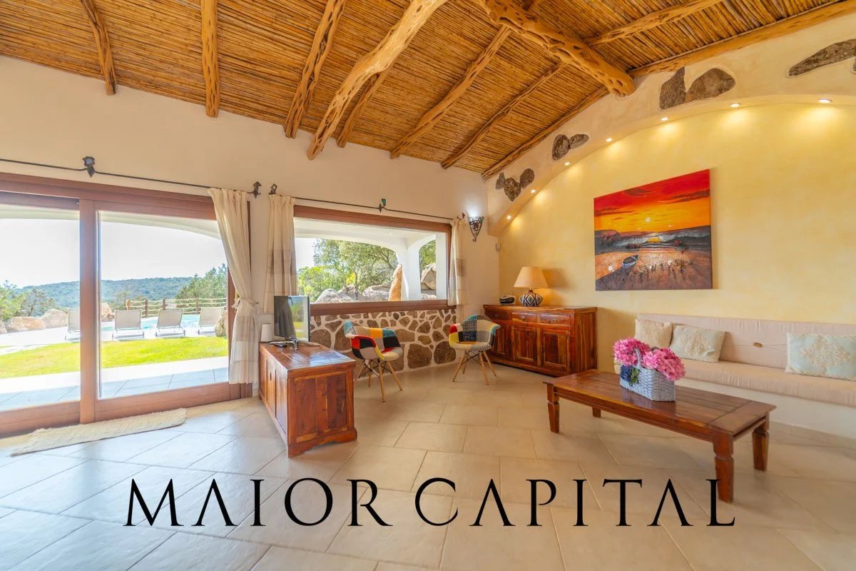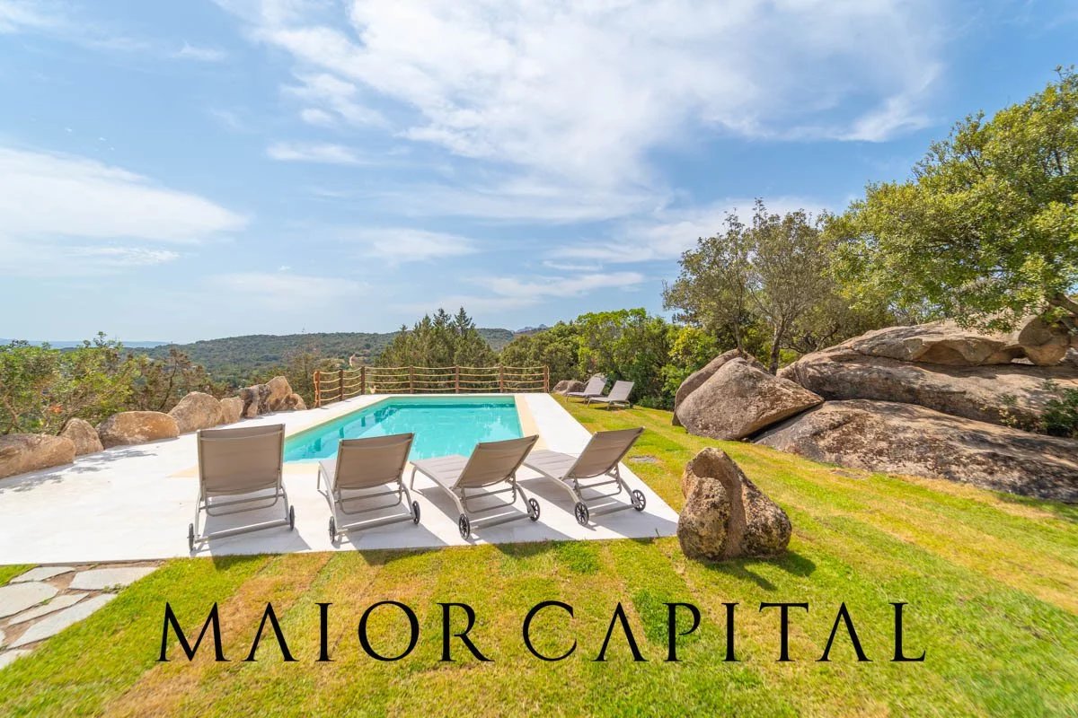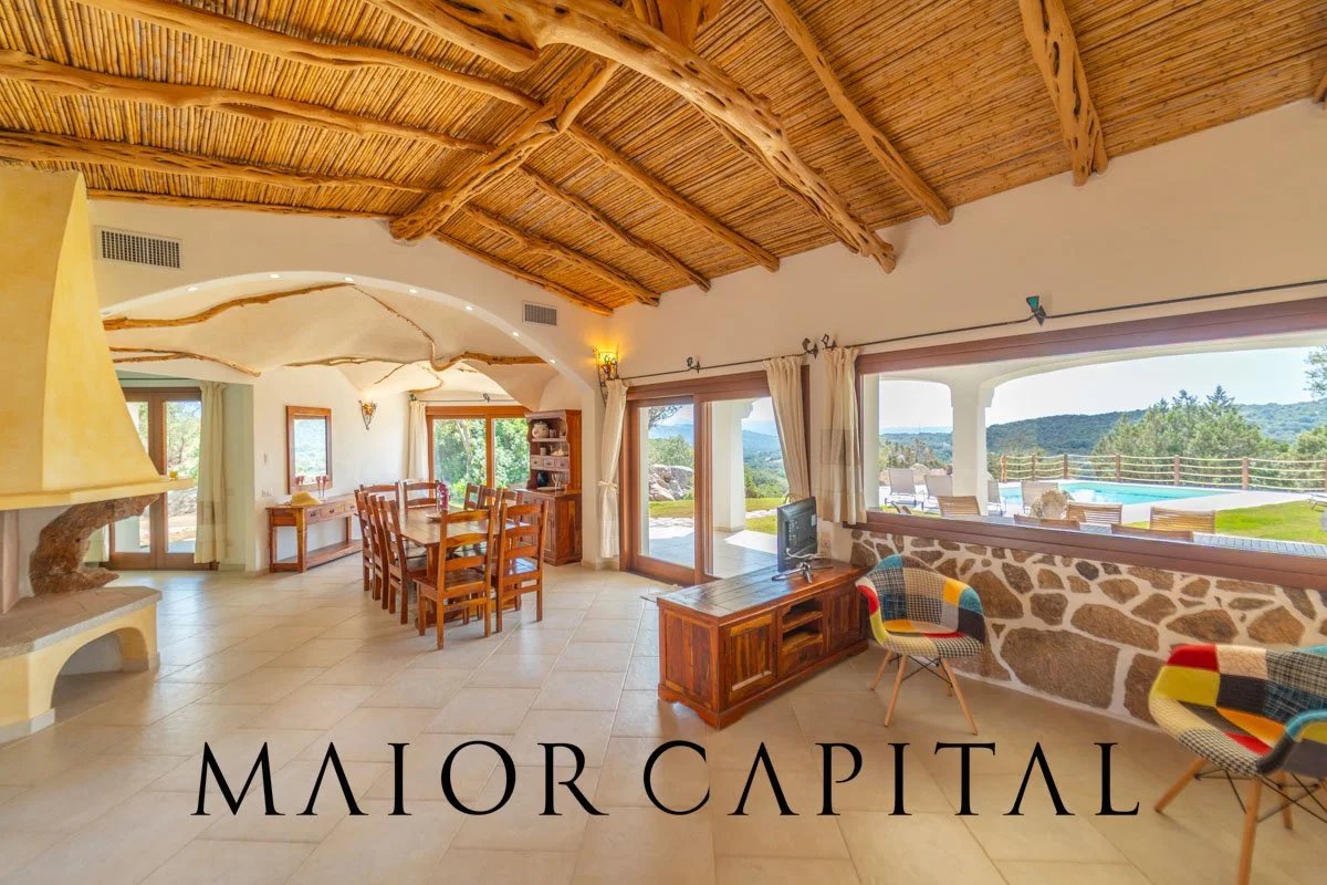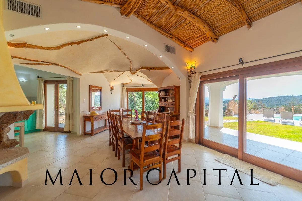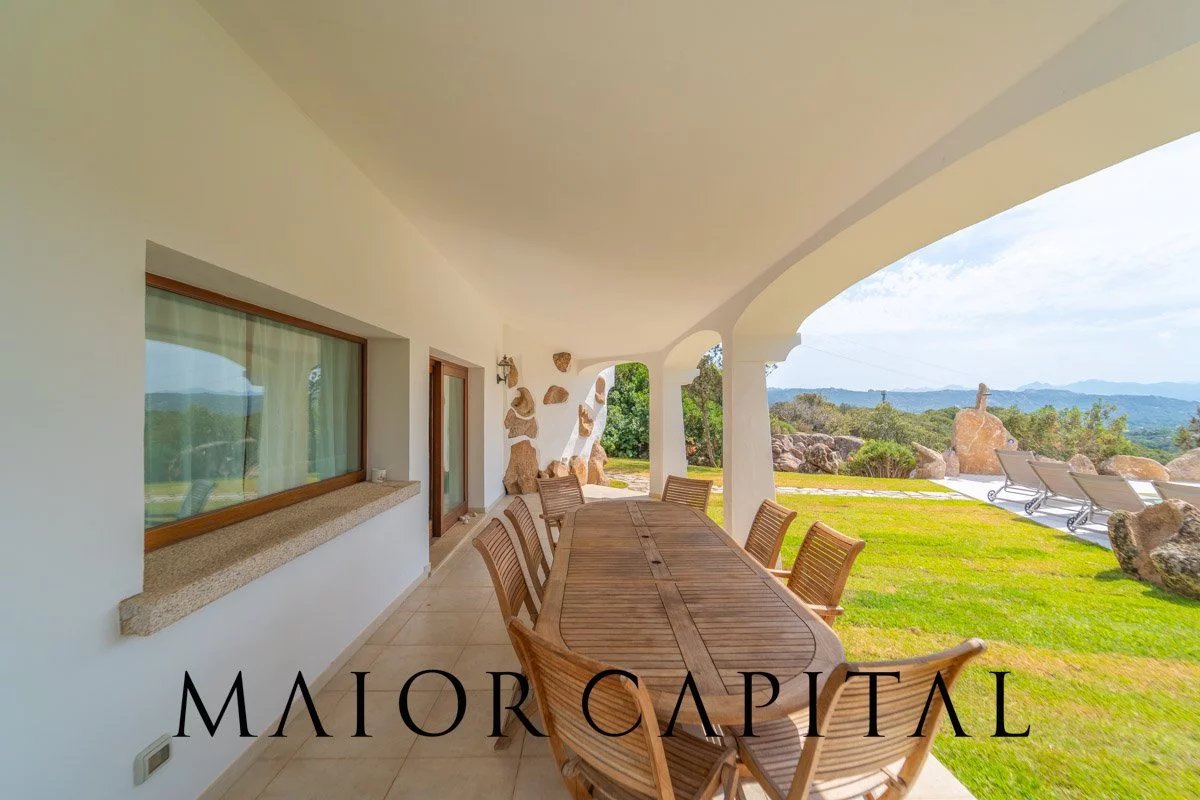 Only 10 minutes from the picturesque village of San Pantaleo and 15 minutes from the renowned Porto Cervo, this splendid villa represents an oasis of tranquillity and beauty, immersed in the lush greenery of the Mediterranean maquis. The property extends over a plot of about two hectares with 35 olive trees, creating an authentic and relaxing atmosphere, typical of the Sardinian countryside.