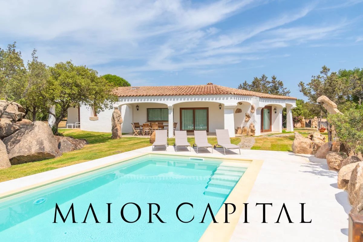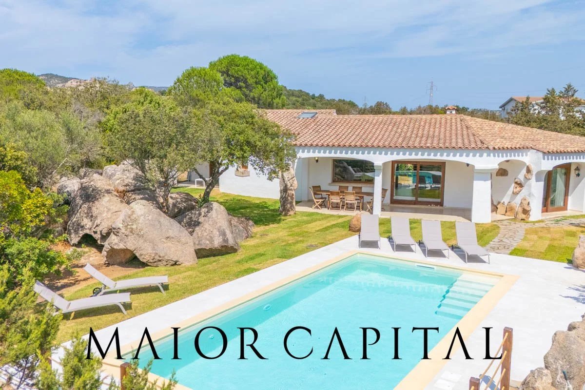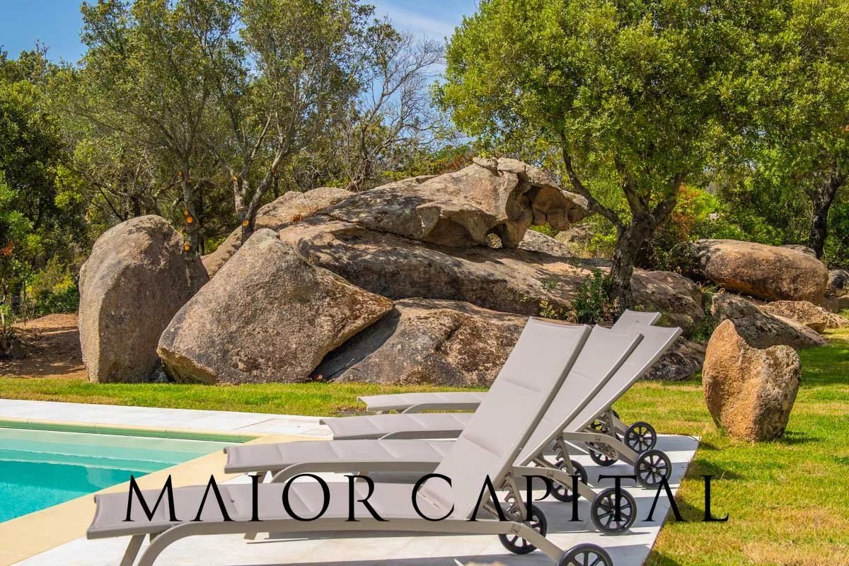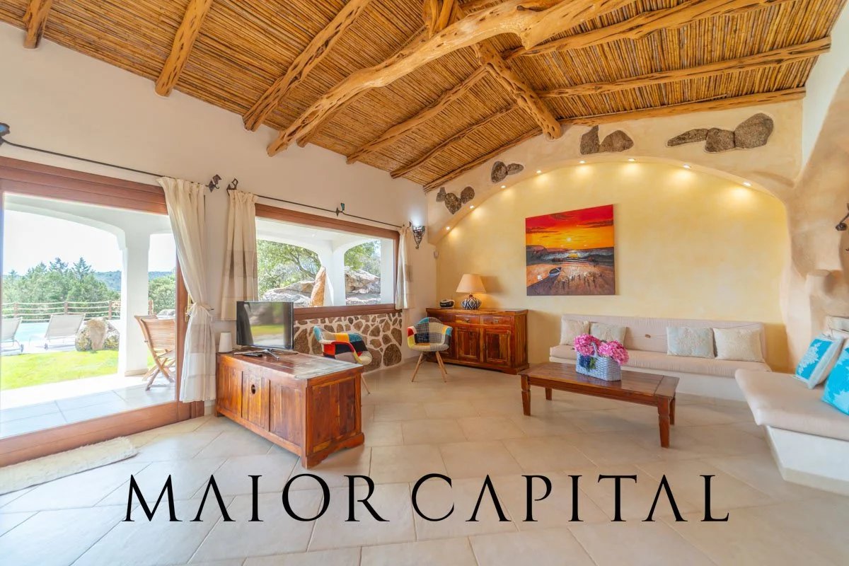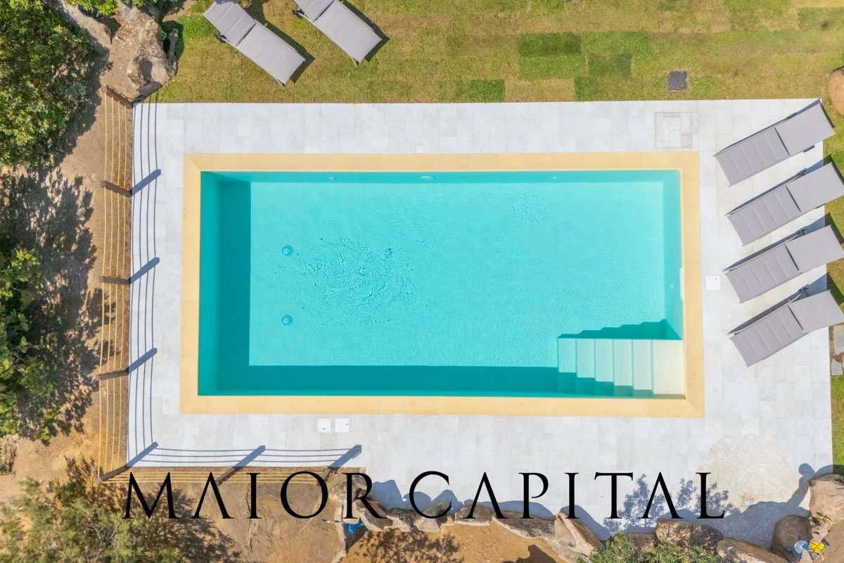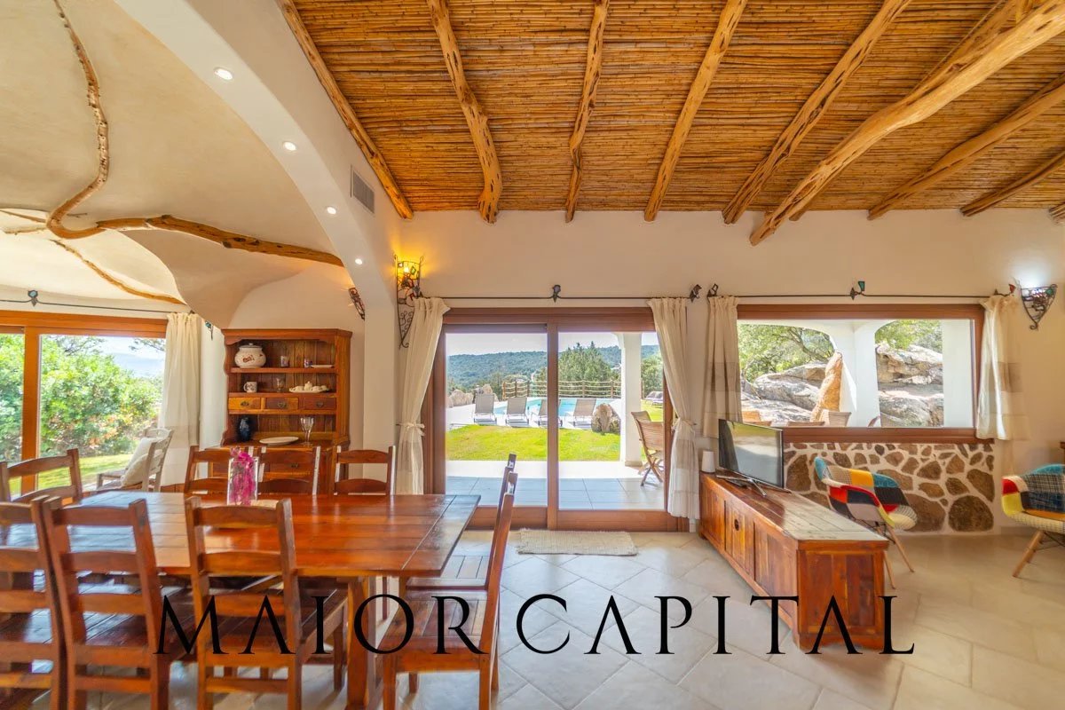 Only 10 minutes from the picturesque village of San Pantaleo and 15 minutes from the renowned Porto Cervo, this splendid villa represents an oasis of tranquillity and beauty, immersed in the lush greenery of the Mediterranean maquis. The property extends over a plot of about two hectares with 35 olive trees, creating an authentic and relaxing atmosphere, typical of the Sardinian countryside.