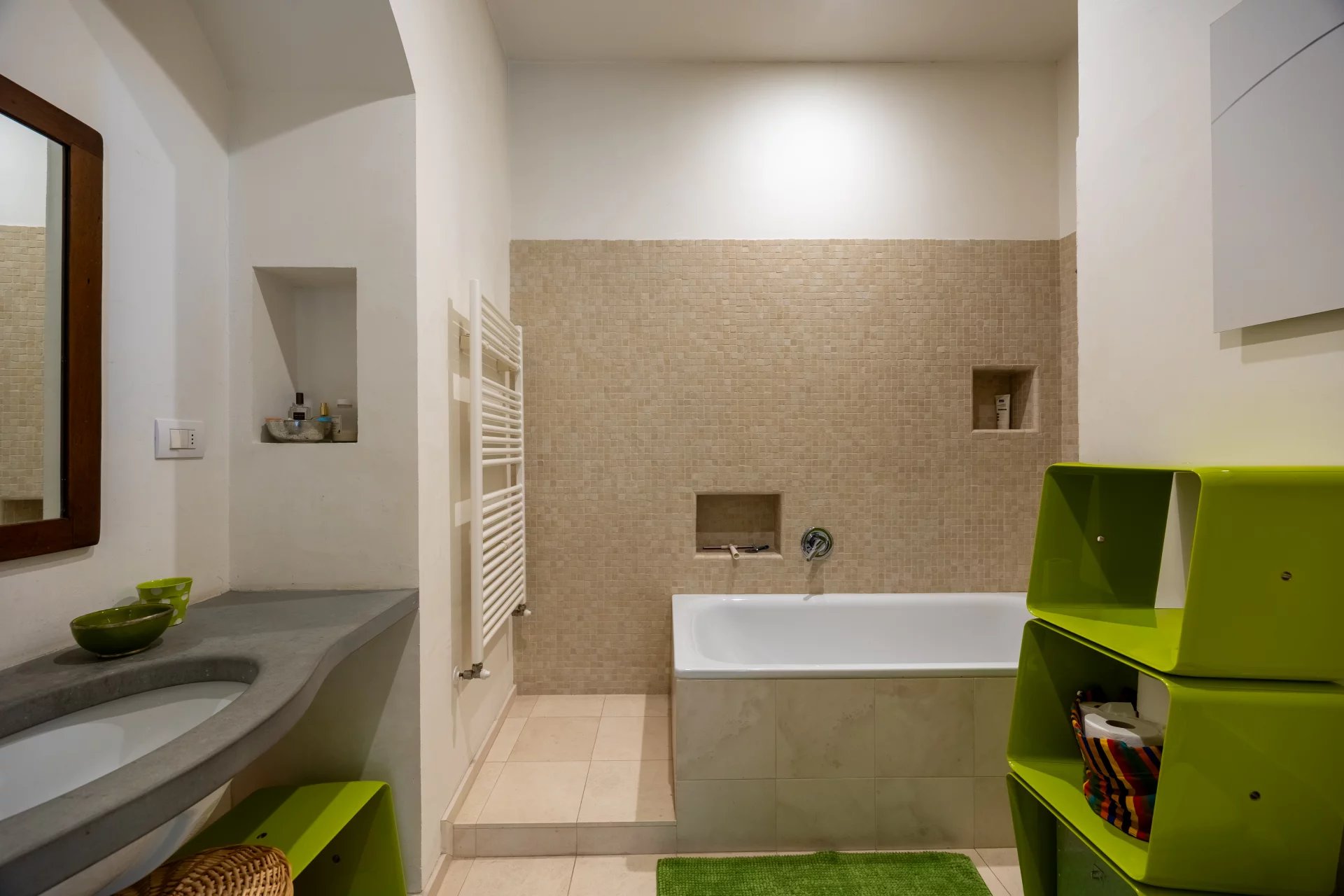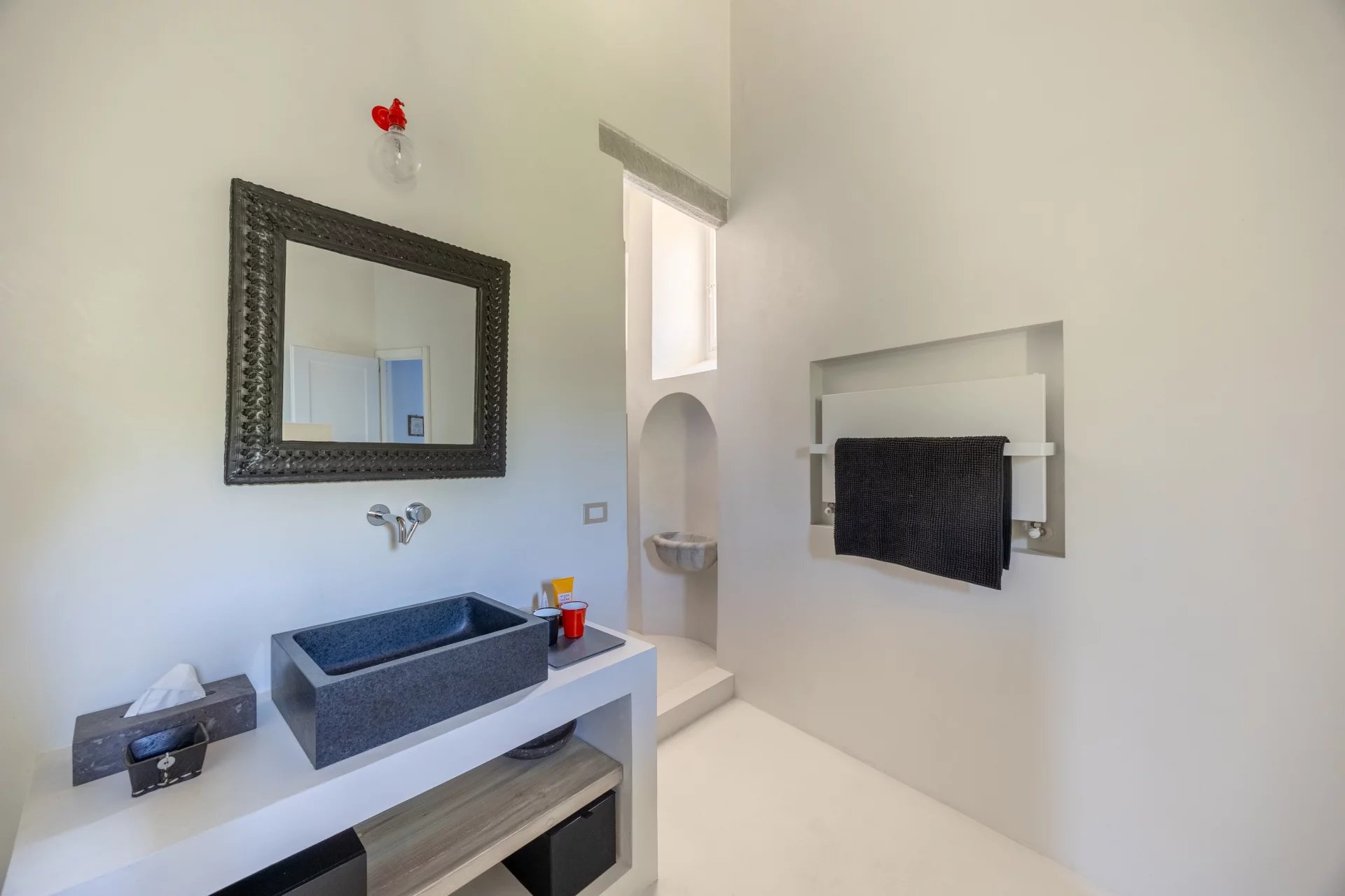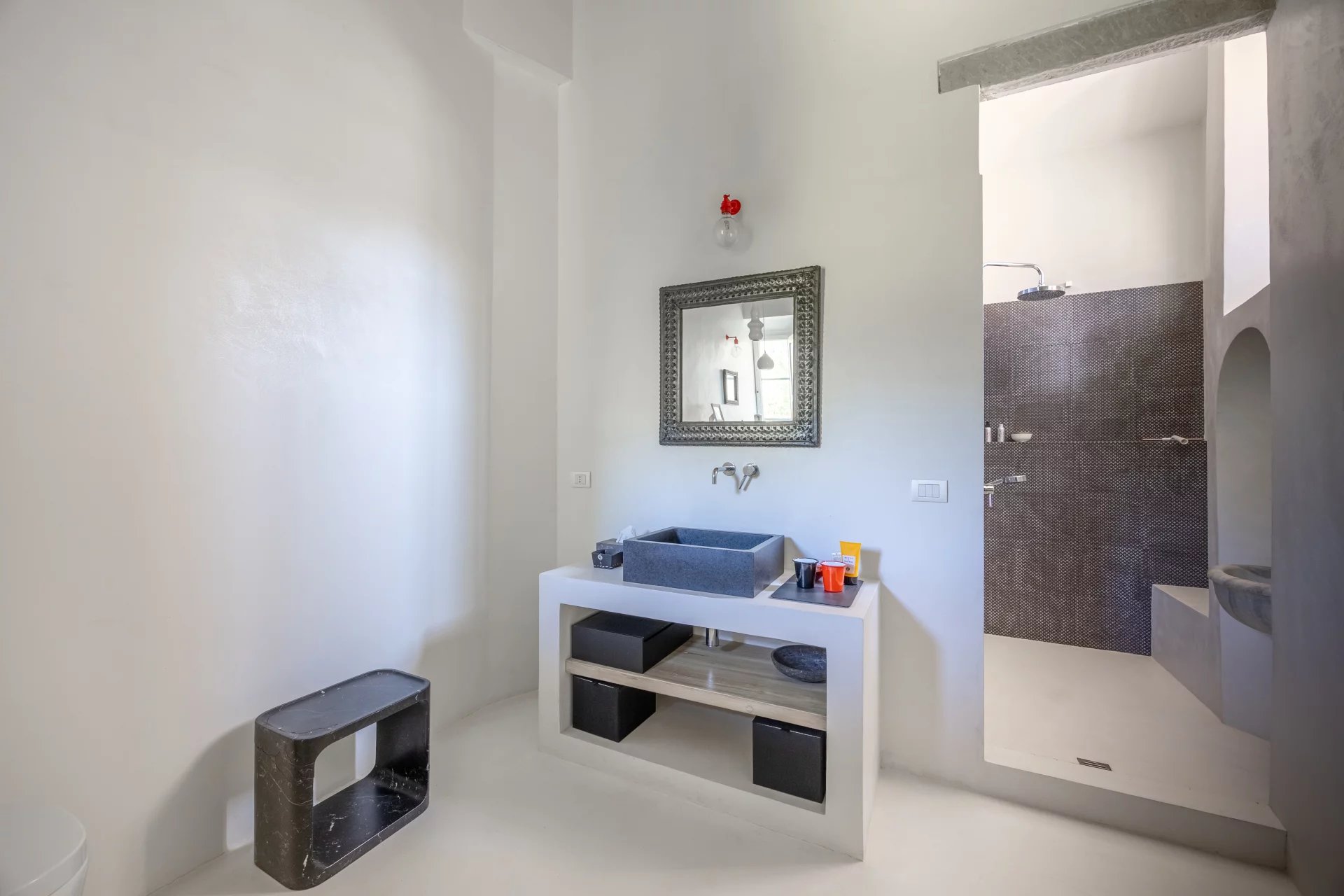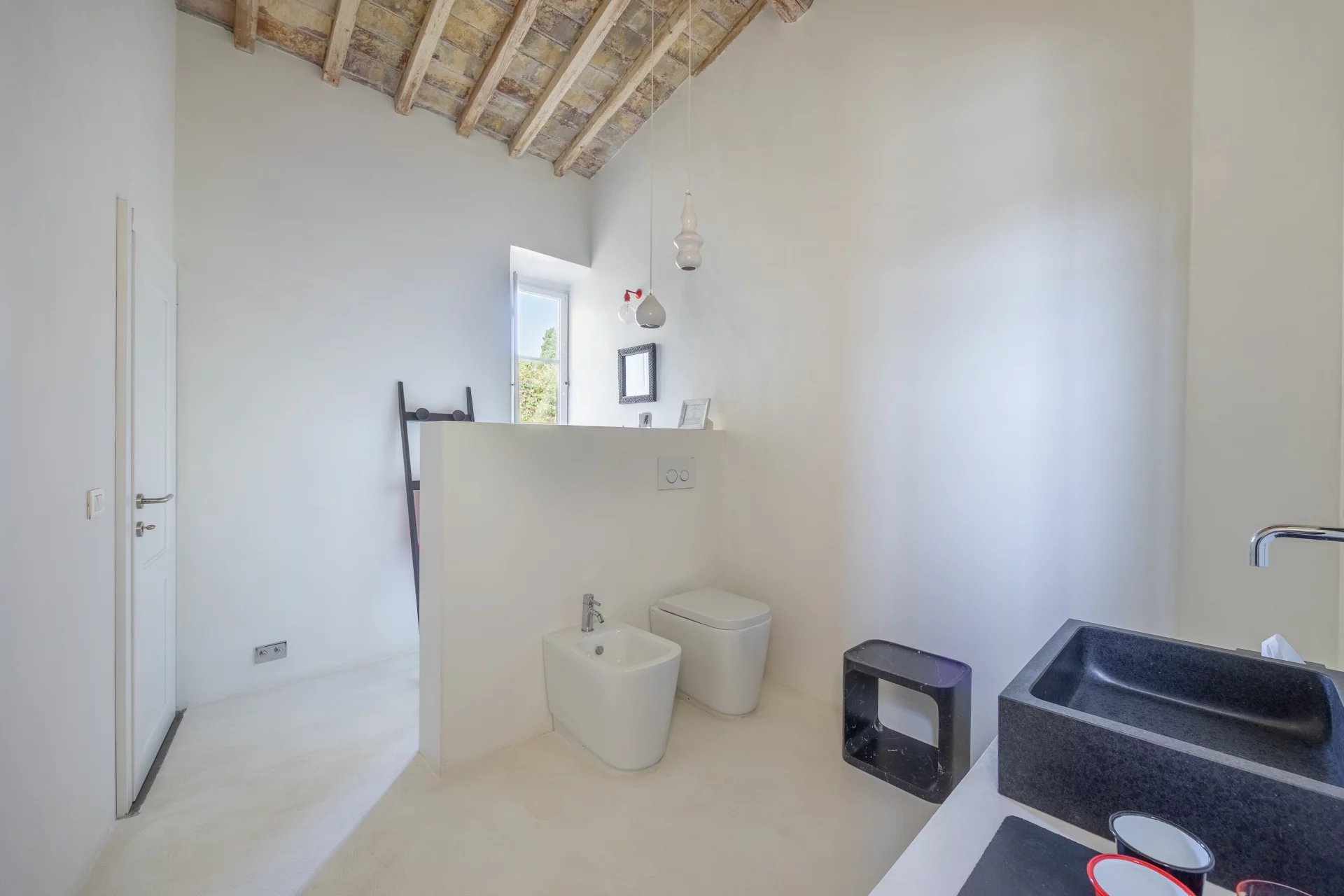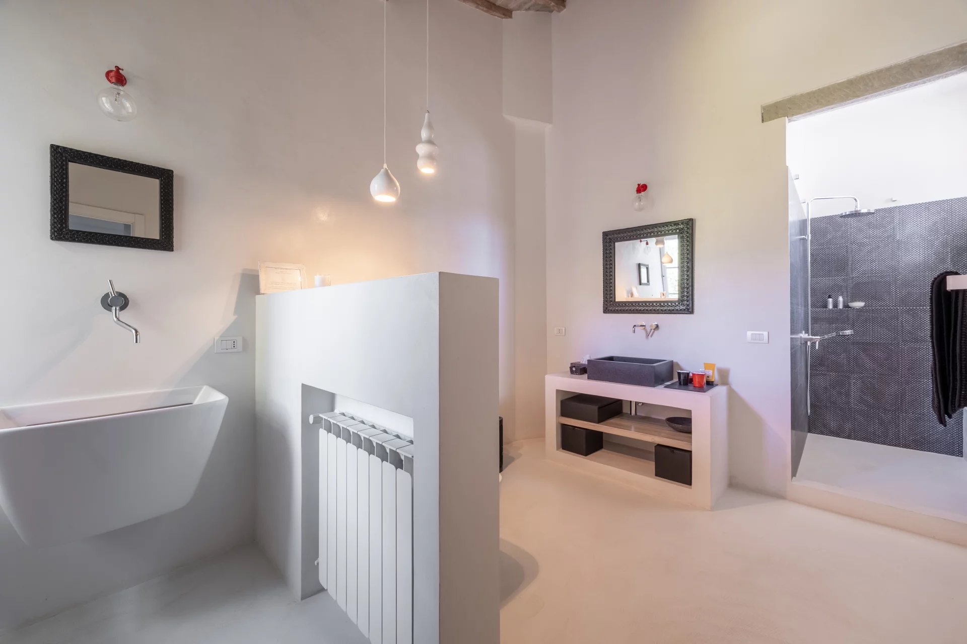 The finishes are of the highest quality: travertine, parquet, pietra serena, and resin enrich the interiors with elegance and refinement.