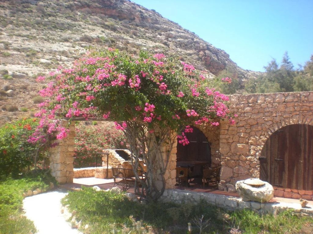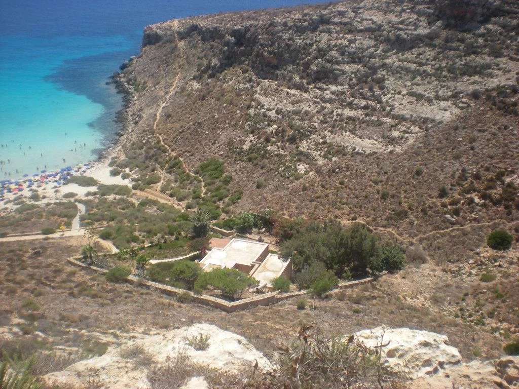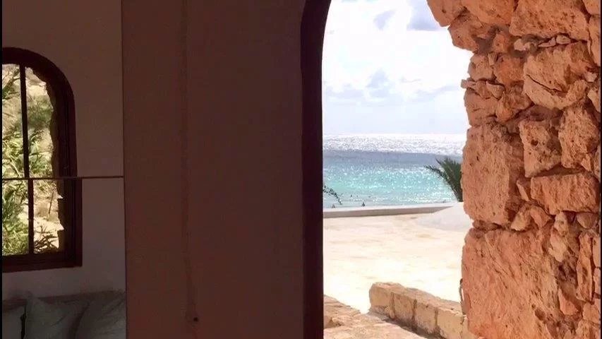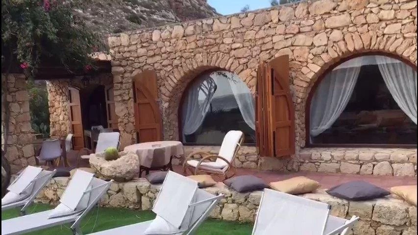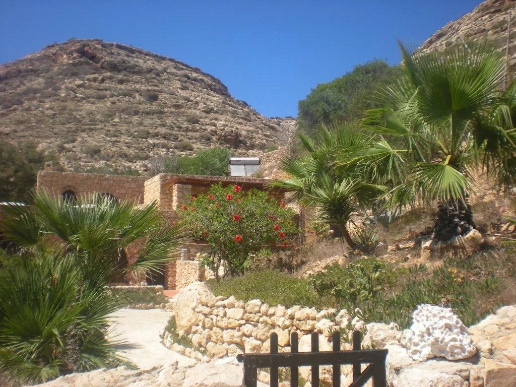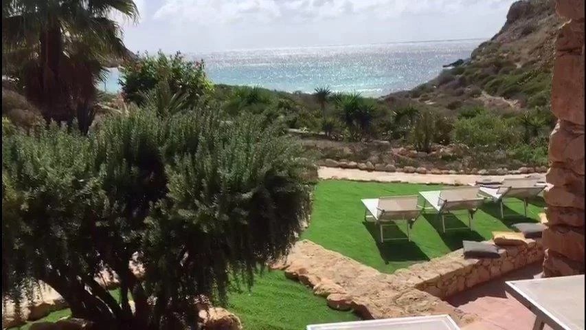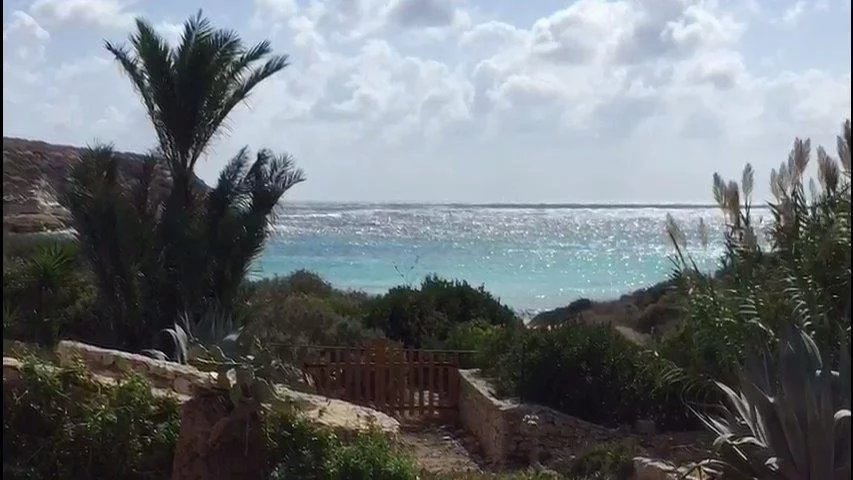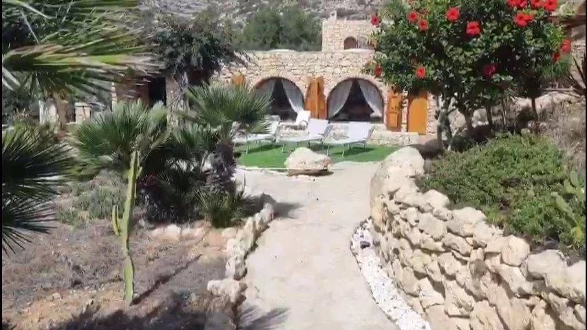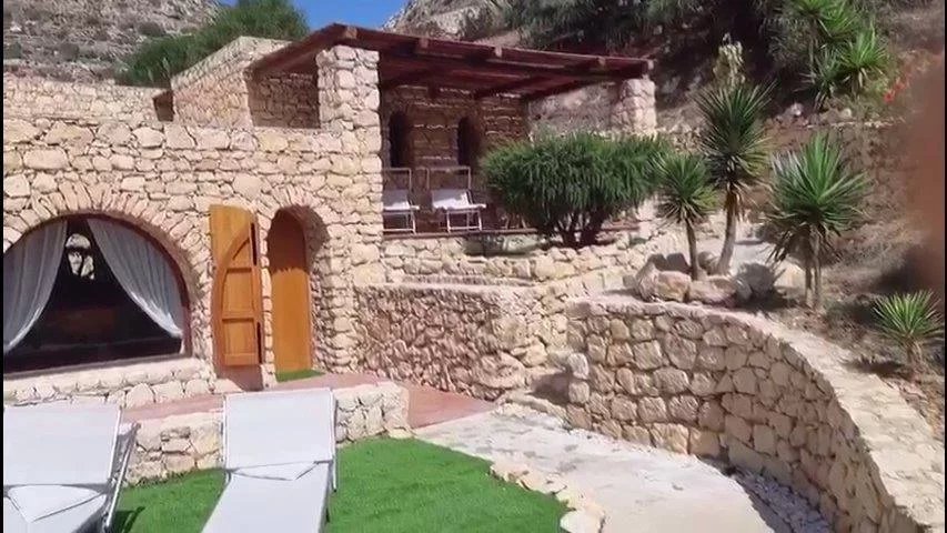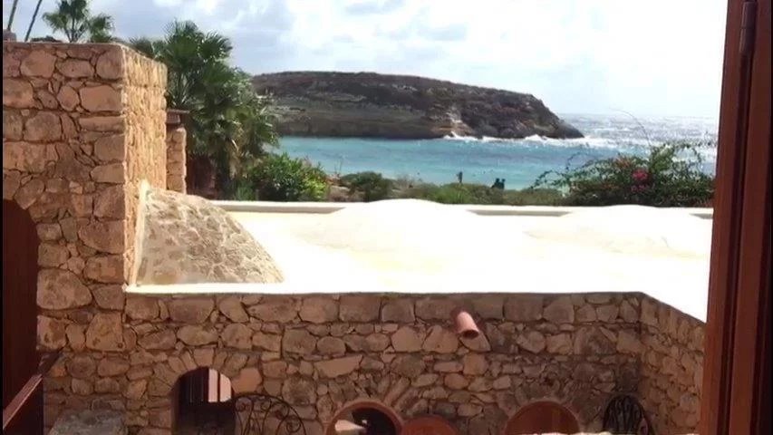 The villa is located within the Nature Reserve of the Island of Lampedusa, an area characterized by a very high landscape and environmental value, facing one of the most beautiful beaches on the island and in the Mediterranean, the beach of rabbits, which accessed directly from the property. The villa consists of two buildings with a gross surface area of approximately 220 m2 and a veranda, terraces and patio for a total of approximately 120 m2, joined together by a patio on the ground floor and a terrace on the first floor, which rise in front of the Isola dei Conigli and directly overlook the homonymous beach. The villa is surrounded by a garden of about 1000 square meters enclosed with a dry stone wall, inside the garden there are various tree species, palms, bougainvilleas, agaves and other essences typical of the Mediterranean maquis. Access to the villa is from the Strada di Ponente, which is paved up to about 500 m from the villa, where there is a small clearing that can be used as a parking lot, from here, the driveway access is closed and the road can only be traveled on foot. The villa was built in the late seventies through the demolition and reconstruction of a previous building. The villa was built keeping faith with the typical characteristics of island dammusi with external walls in exposed stone, flat roofs with small central vaults, patios and verandas with wooden roofs. - First body of the building - The ground floor is accessed directly from the garden through a portico that overlooks the sea. The floor consists of a large living room, an eat-in kitchen and through a small corridor to two bedrooms served by a bathroom that can also be used from the living area. From the living room, an internal staircase leads to the mezzanine floor where there is a third bedroom with a covered terrace overlooking the sea and a master bathroom. In the middle of the connecting staircase to the mezzanine floor, there is an exit which via an external stone staircase connects the first building to the first floor of the second building. Access to the bedroom on the first floor is via a large terrace which leads to the fourth bedroom, also with private bathroom. - Second building - The ground floor consists of two rooms, the first larger accessible from the garden is used as a laundry room, the second also accessible from the internal patio of the villa is used as a fifth bedroom, this one also equipped with its own small toilet service. Internally the villa is in good maintenance conditions with terracotta floors, wall and ceiling coverings with painted plaster and internal wooden doors. A particular residence in a unique and unrepeatable setting in contact with nature in one of the most beautiful corners in the world.--4fe757d218808bb89b5782ee369f9853!