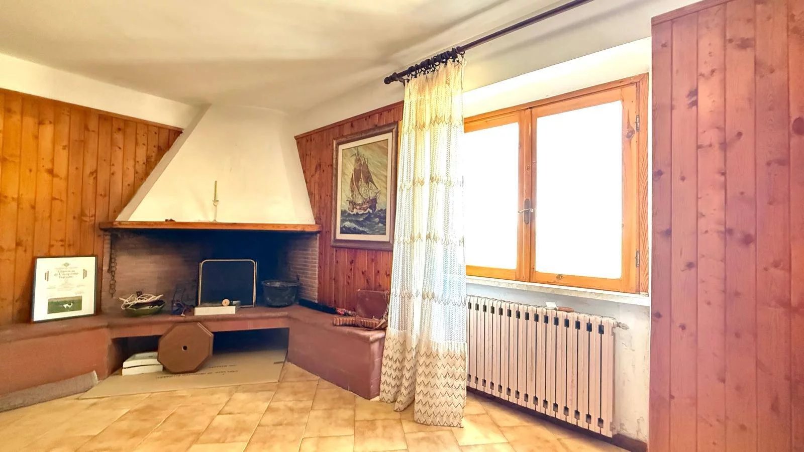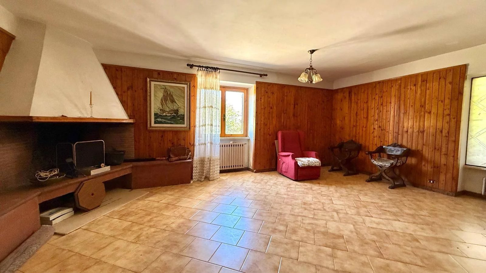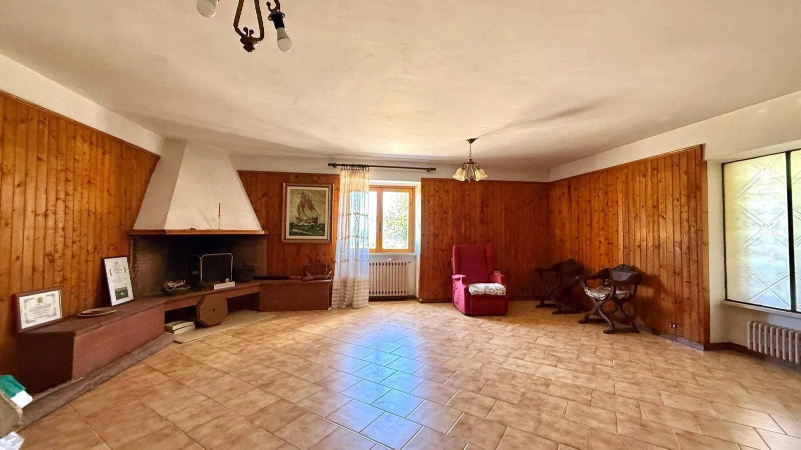 Salone luminoso di circa 40 mq con camino