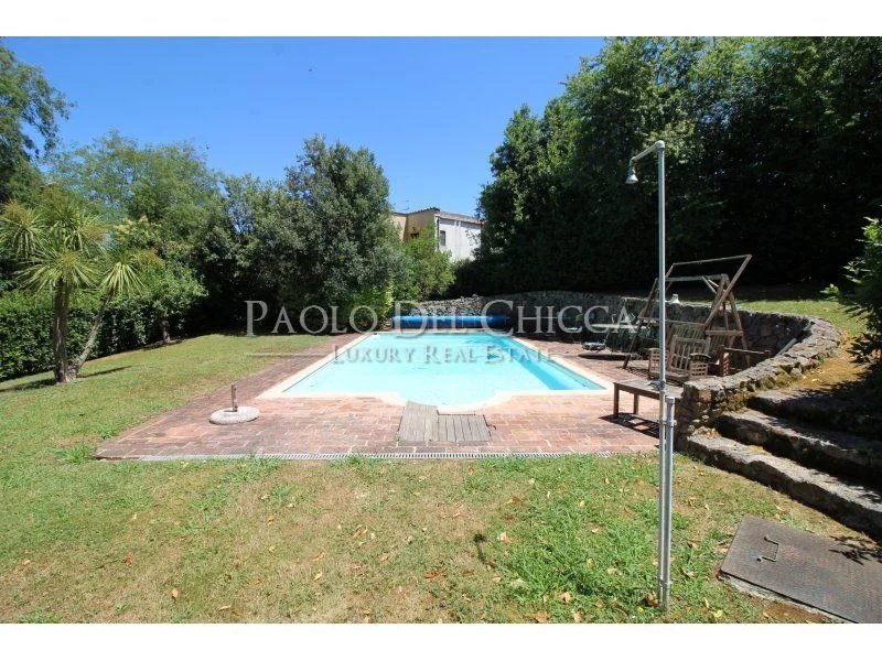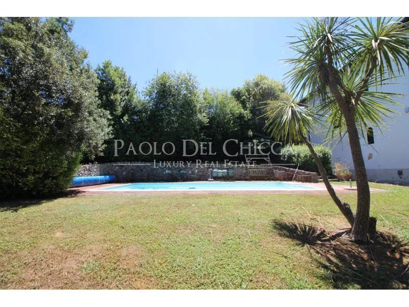 Questa originalissima residenza è circondata da 1.200 mq. di giardino che garantisce un'ottima privacy, dove troviamo anche una piscina di mt. 10X5 ed un pozzo.
