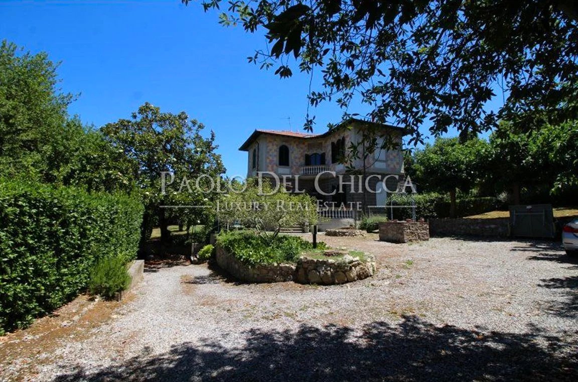 Affascinante villa indipendente del 1914 in tipico stile "liberty", ai margini di un caratteristico paesino a soli 12 km. da Livorno e dal mare, e 16 km dall'Aeroporto Internazionale di Pisa.
